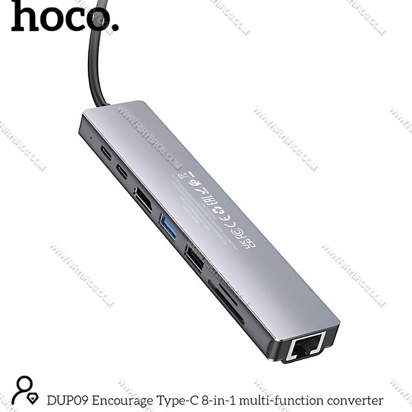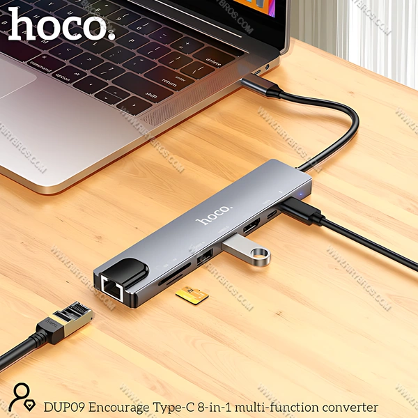 Hoco DUP09 – מפצל USB-C 8 ב־1 חכם ונוח לשימוש יומיומי