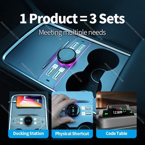 העיצוב משתלב בצורה מושלמת בקונסולה של טסלה Model 3 Y ומעניק מראה יוקרתי ויעיל.
